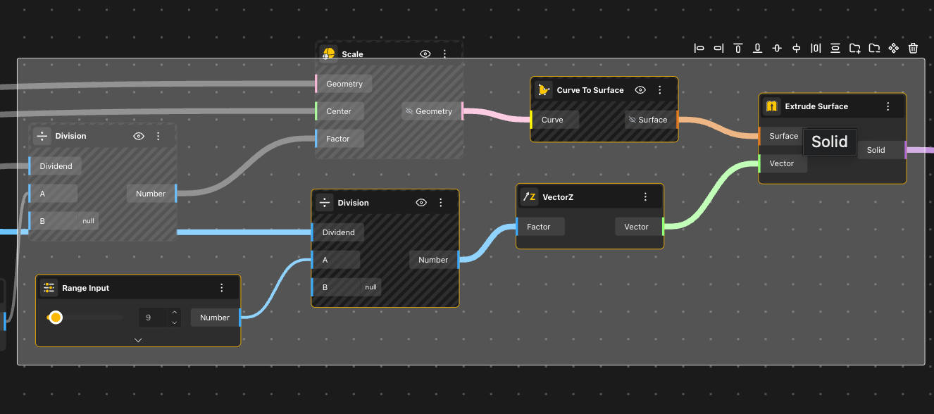 - Create a Vector Z node to define the extrusion direction and magnitude.