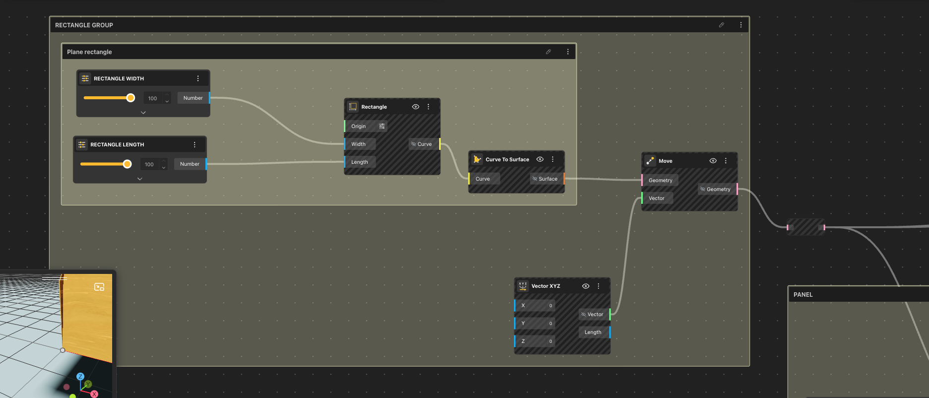 - A Move node paired with Vector XYZ provided flexibility to adjust the plane’s position in 3D space.