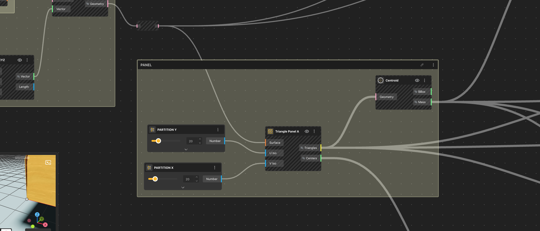 - The surface was split using Partition X and Partition Y, each controlled by numeric sliders to determine the panel density.