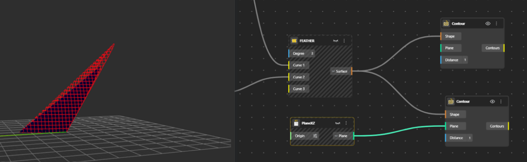 - Connect the Surface (from the loft surface outport) to the Contour input.